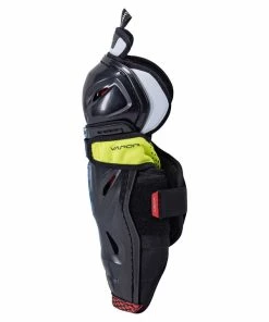 - ANATOMICAL PE SHIN CAP DESIGN WITH TAPE GROOVE – Pro strength PE shin cap and landing to lock in hockey tape.